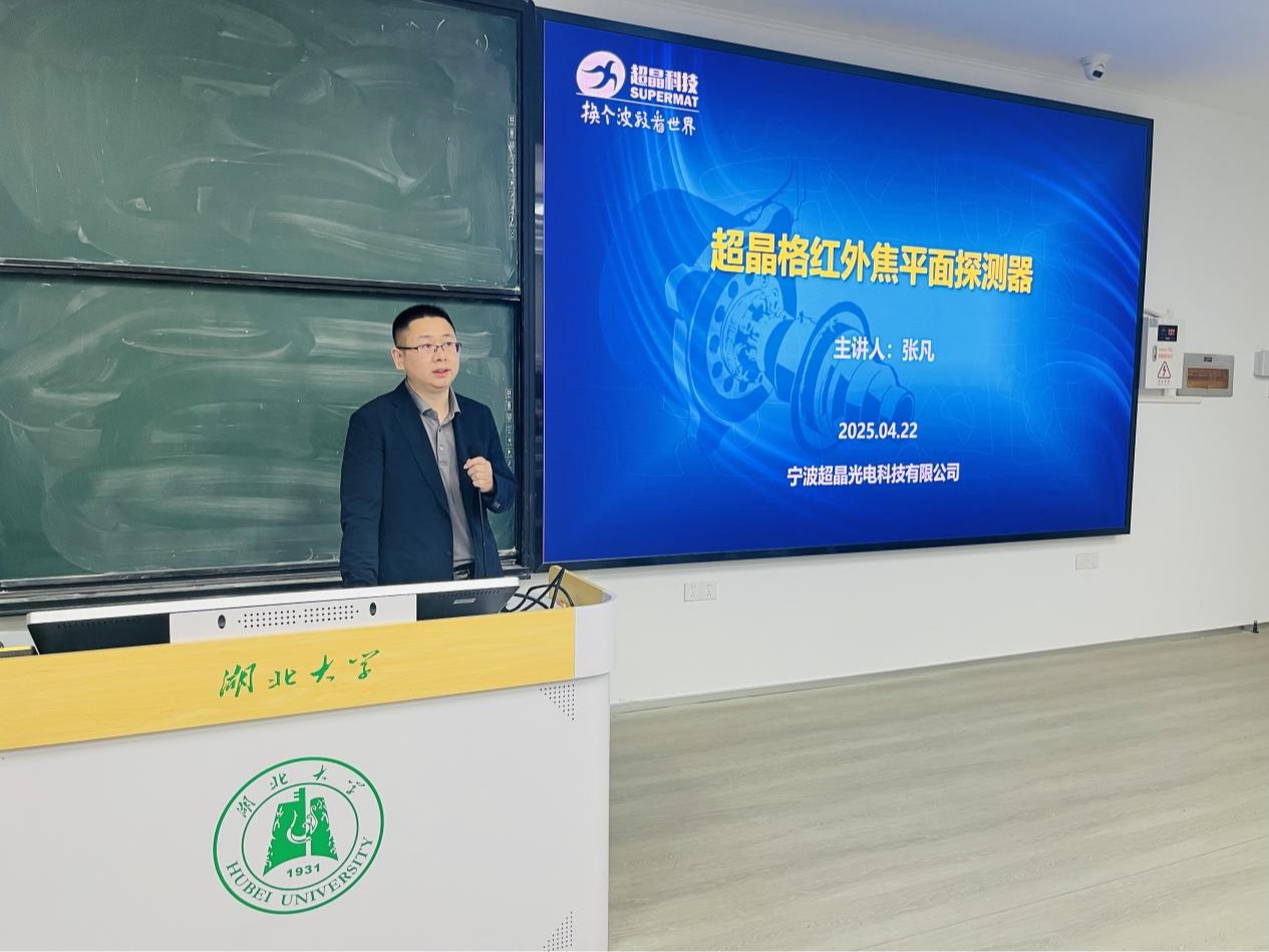报告伊始,张凡博士立足国家战略需求,系统梳理了超晶格红外焦平面探测器在军事、工业、航空航天以及医疗等关键领域的广泛应用,并详细阐述了当前该领域面临的技术瓶颈。他从半导体器件物理和微电子工艺的角度出发,深入剖析了超晶格红外焦平面探测器的工作原理以及科研产业界的前沿动态,使复杂的理论知识变得通俗易懂,让在场师生受益匪浅。在分享个人经历时,张凡博士介绍了其在宁波超晶光电科技有限公司组建国内首个新型化合物半导体红外焦平面探测器批量生产研发团队的历程。他带领团队成功实现了基于二类超晶格技术的红外焦平面探测器产品的定型和批量生产,为我国在该领域的技术突破做出了重要贡献。张凡博士还强调:“超晶格红外焦平面探测器让我们换个波段看世界,其发展直接关系到国家安全和民生福祉。”他还指出,当前光电探测产业链仍存在诸多“卡脖子”技术问题,而行业对电科、光电、微电子和集成电路人才的需求正急剧增加。他鼓励在场员工珍惜在校时光,学好每一门基础课和专业课,并以自身经历为例,阐述了扎实的专业知识在实际工作中所发挥的关键作用:“等你们毕业后从事生产研发工作,就会深刻体会到当年为什么要学习量子力学、固体物理学和半导体物理等课程。”