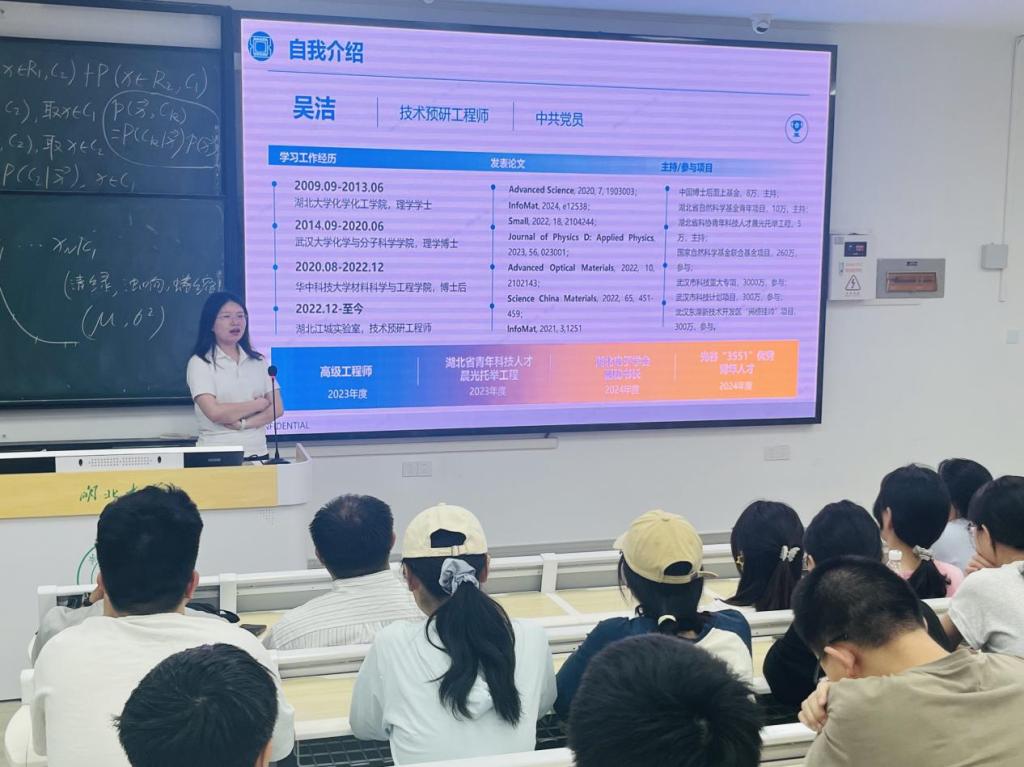 为促进学术与产业的深度交流,微电子公司微电子科学与工程系主任韩伟老师特别邀请了湖北江城实验室技术预研专家吴洁博士,为师生们带来了一场关于“Chiplet先进封装技术的现状与挑战”的专题报告。吴洁博士深入剖析了Chiplet先进封装技术行业的发展现状、技术挑战以及人才需求,为在场师生呈现了一场精彩纷呈的报告。同时,韩伟老师围绕 “日盲紫外光电传感器技术”发表技术报告,为在场师生分享了自己研究组的一系列成果。