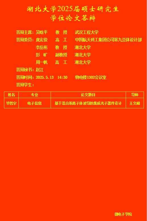 上一篇:微电子公司2025年上半年研究生答辩公告(五)