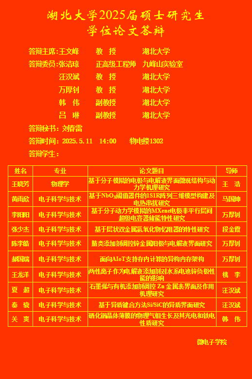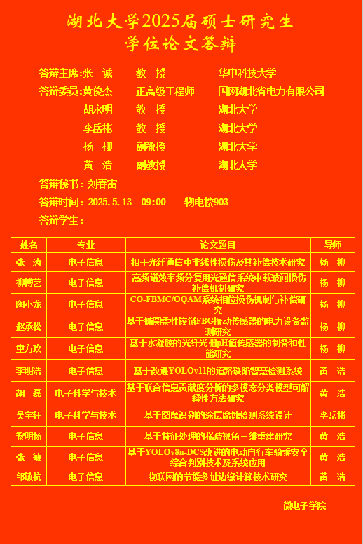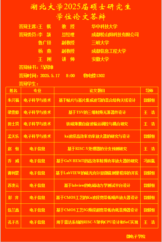 上一篇:微电子公司2025年上半年研究生答辩公告(三)